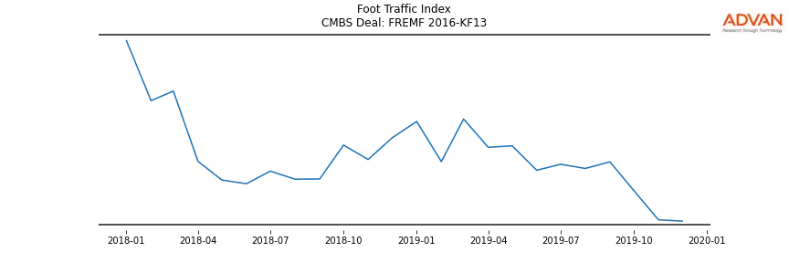 Advan Research computes accurate daily foot-traffic for all the properties and loans of the FREMF 2016-KF13 deal. Here is the foot-traffic aggregated across all the properties of the deal: