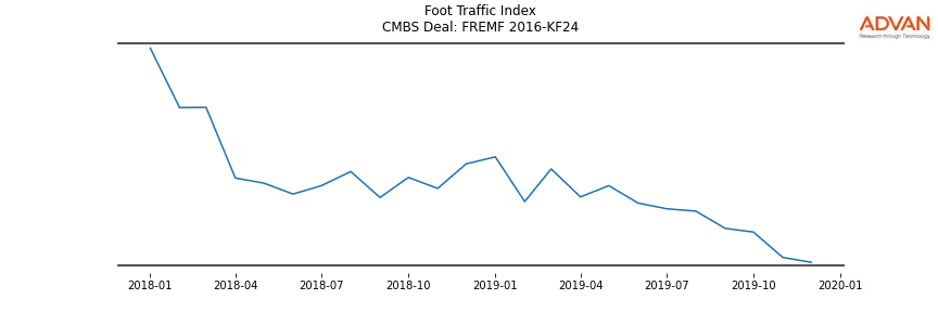 Advan Research computes accurate daily foot-traffic for all the properties and loans of the FREMF 2016-KF24 deal. Here is the foot-traffic aggregated across all the properties of the deal: