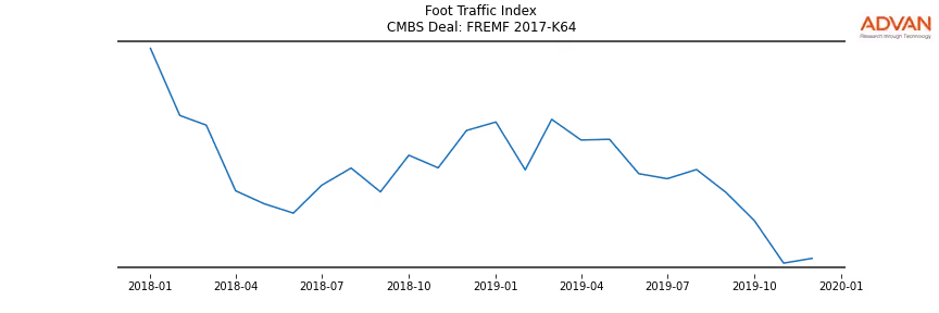 Advan Research computes accurate daily foot-traffic for all the properties and loans of the FREMF 2017-K64 deal. Here is the foot-traffic aggregated across all the properties of the deal: