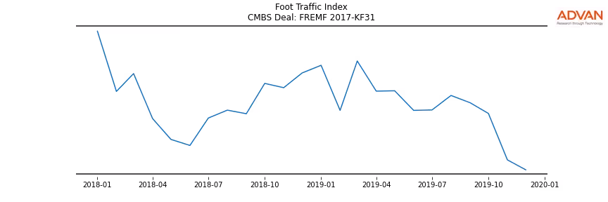 Advan Research computes accurate daily foot-traffic for all the properties and loans of the FREMF 2017-KF31 deal. Here is the foot-traffic aggregated across all the properties of the deal: