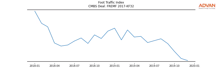 Advan Research computes accurate daily foot-traffic for all the properties and loans of the FREMF 2017-KF32 deal. Here is the foot-traffic aggregated across all the properties of the deal: