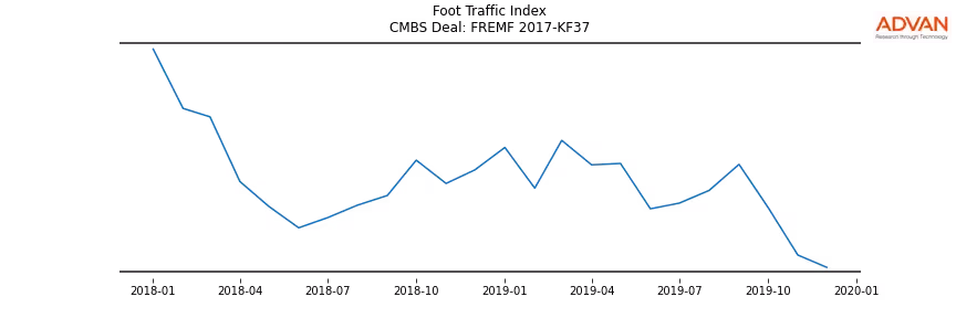 Advan Research computes accurate daily foot-traffic for all the properties and loans of the FREMF 2017-KF37 deal. Here is the foot-traffic aggregated across all the properties of the deal: