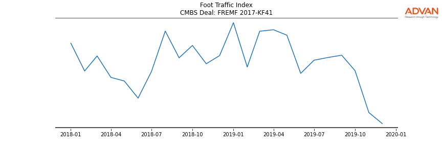 Advan Research computes accurate daily foot-traffic for all the properties and loans of the FREMF 2017-KF41 deal. Here is the foot-traffic aggregated across all the properties of the deal: