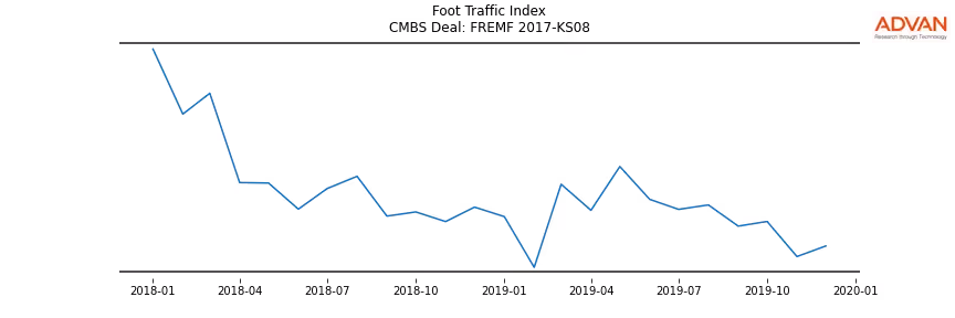 Advan Research computes accurate daily foot-traffic for all the properties and loans of the FREMF 2017-KS08 deal. Here is the foot-traffic aggregated across all the properties of the deal:
