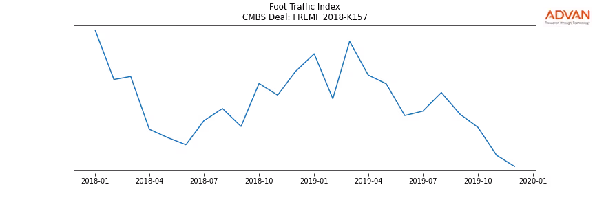 Advan Research computes accurate daily foot-traffic for all the properties and loans of the FREMF 2018-K157 deal. Here is the foot-traffic aggregated across all the properties of the deal: