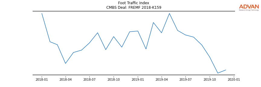 Advan Research computes accurate daily foot-traffic for all the properties and loans of the FREMF 2018-K159 deal. Here is the foot-traffic aggregated across all the properties of the deal: