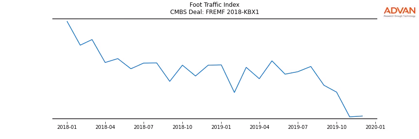 Advan Research computes accurate daily foot-traffic for all the properties and loans of the FREMF 2018-KBX1 deal. Here is the foot-traffic aggregated across all the properties of the deal: