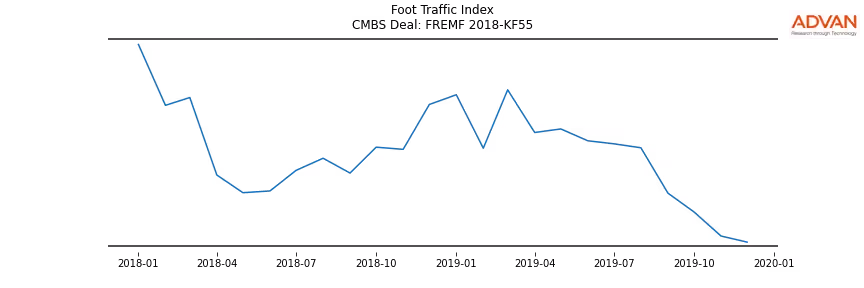 Advan Research computes accurate daily foot-traffic for all the properties and loans of the FREMF 2018-KF55 deal. Here is the foot-traffic aggregated across all the properties of the deal: