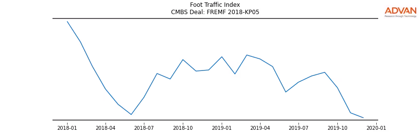 Advan Research computes accurate daily foot-traffic for all the properties and loans of the FREMF 2018-KP05 deal. Here is the foot-traffic aggregated across all the properties of the deal: