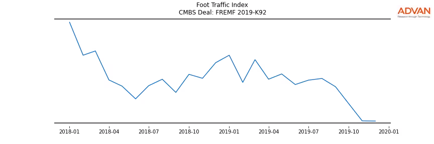 Advan Research computes accurate daily foot-traffic for all the properties and loans of the FREMF 2019-K92 deal. Here is the foot-traffic aggregated across all the properties of the deal: