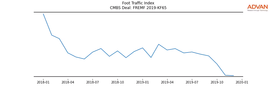 Advan Research computes accurate daily foot-traffic for all the properties and loans of the FREMF 2019-KF65 deal. Here is the foot-traffic aggregated across all the properties of the deal: