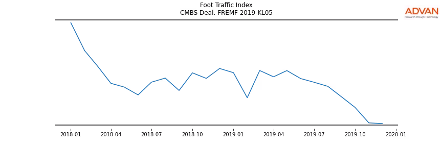 Advan Research computes accurate daily foot-traffic for all the properties and loans of the FREMF 2019-KL05 deal. Here is the foot-traffic aggregated across all the properties of the deal: