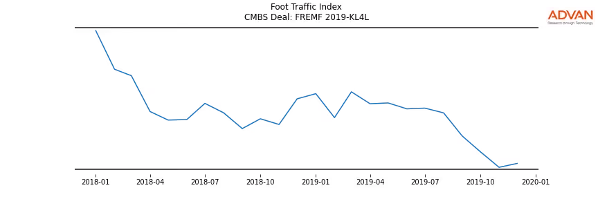 Advan Research computes accurate daily foot-traffic for all the properties and loans of the FREMF 2019-KL4L deal. Here is the foot-traffic aggregated across all the properties of the deal: