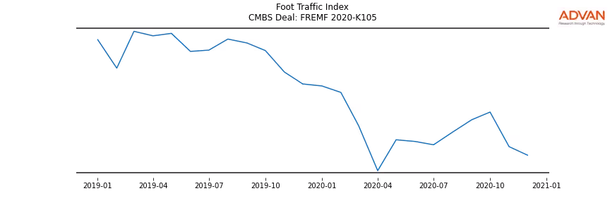 Advan Research computes accurate daily foot-traffic for all the properties and loans of the FREMF 2020-K105 deal. Here is the foot-traffic aggregated across all the properties of the deal: