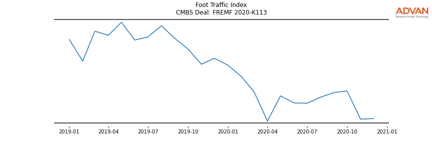 Advan Research computes accurate daily foot-traffic for all the properties and loans of the FREMF 2020-K113 deal. Here is the foot-traffic aggregated across all the properties of the deal: