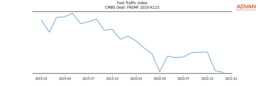 Advan Research computes accurate daily foot-traffic for all the properties and loans of the FREMF 2020-K115 deal. Here is the foot-traffic aggregated across all the properties of the deal: