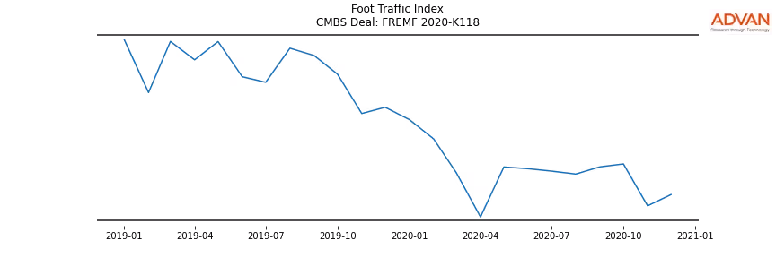 Advan Research computes accurate daily foot-traffic for all the properties and loans of the FREMF 2020-K118 deal. Here is the foot-traffic aggregated across all the properties of the deal: