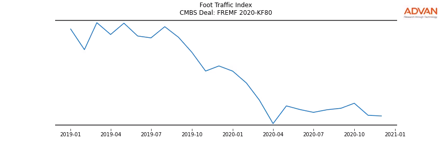 Advan Research computes accurate daily foot-traffic for all the properties and loans of the FREMF 2020-KF80 deal. Here is the foot-traffic aggregated across all the properties of the deal: