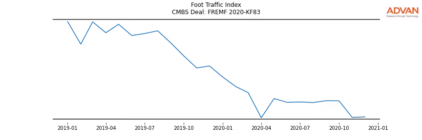 Advan Research computes accurate daily foot-traffic for all the properties and loans of the FREMF 2020-KF83 deal. Here is the foot-traffic aggregated across all the properties of the deal: