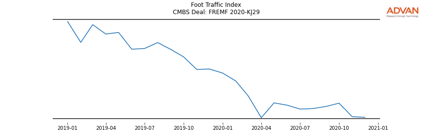 Advan Research computes accurate daily foot-traffic for all the properties and loans of the FREMF 2020-KJ29 deal. Here is the foot-traffic aggregated across all the properties of the deal: