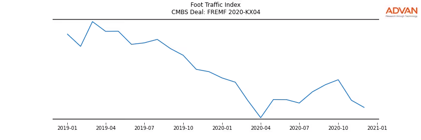 Advan Research computes accurate daily foot-traffic for all the properties and loans of the FREMF 2020-KX04 deal. Here is the foot-traffic aggregated across all the properties of the deal: