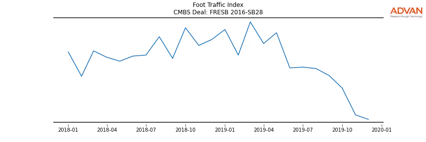 Advan Research computes accurate daily foot-traffic for all the properties and loans of the FRESB 2016-SB28 deal. Here is the foot-traffic aggregated across all the properties of the deal: