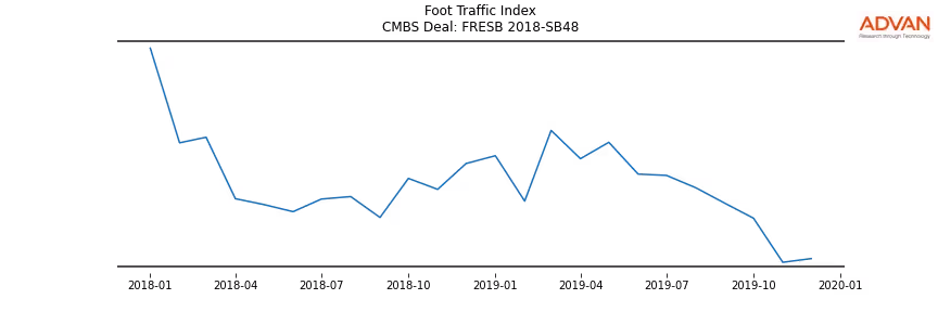 Advan Research computes accurate daily foot-traffic for all the properties and loans of the FRESB 2018-SB48 deal. Here is the foot-traffic aggregated across all the properties of the deal: