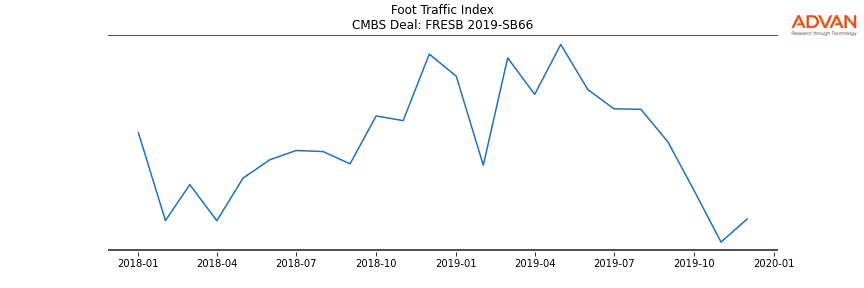 Advan Research computes accurate daily foot-traffic for all the properties and loans of the FRESB 2019-SB66 deal. Here is the foot-traffic aggregated across all the properties of the deal: