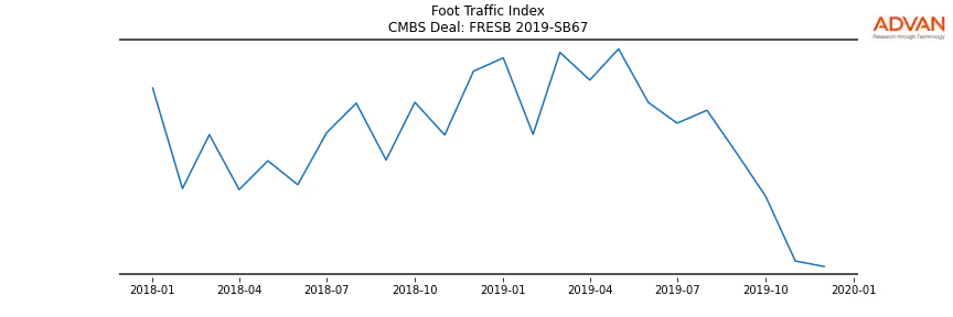 Advan Research computes accurate daily foot-traffic for all the properties and loans of the FRESB 2019-SB67 deal. Here is the foot-traffic aggregated across all the properties of the deal: