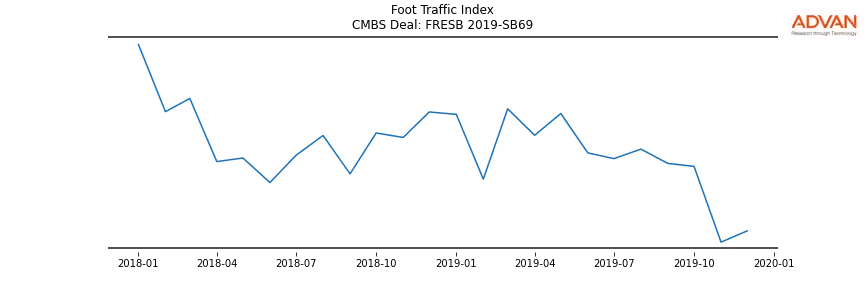 Advan Research computes accurate daily foot-traffic for all the properties and loans of the FRESB 2019-SB69 deal. Here is the foot-traffic aggregated across all the properties of the deal: