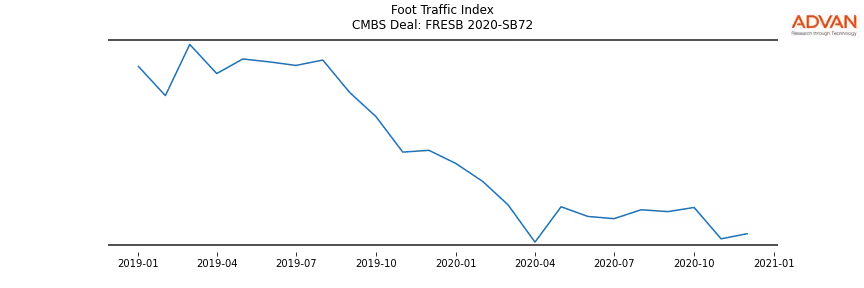Advan Research computes accurate daily foot-traffic for all the properties and loans of the FRESB 2020-SB72 deal. Here is the foot-traffic aggregated across all the properties of the deal: