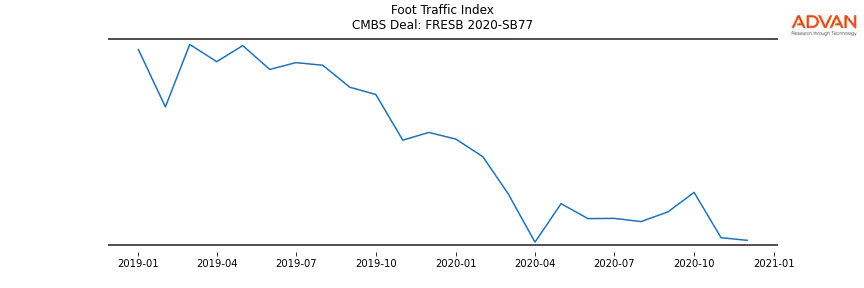 Advan Research computes accurate daily foot-traffic for all the properties and loans of the FRESB 2020-SB77 deal. Here is the foot-traffic aggregated across all the properties of the deal: