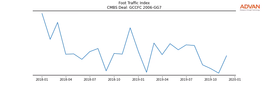 Advan Research computes accurate daily foot-traffic for all the properties and loans of the GCCFC 2006-GG7 deal. Here is the foot-traffic aggregated across all the properties of the deal:
