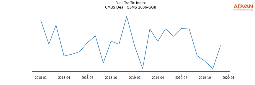 Advan Research computes accurate daily foot-traffic for all the properties and loans of the GSMS 2006-GG8 deal. Here is the foot-traffic aggregated across all the properties of the deal: