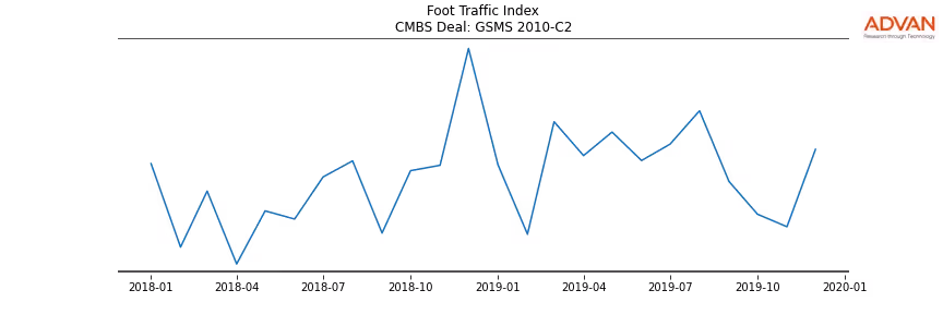 Advan Research computes accurate daily foot-traffic for all the properties and loans of the GSMS 2010-C2 deal. Here is the foot-traffic aggregated across all the properties of the deal: