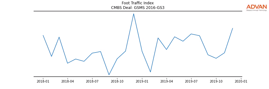 Advan Research computes accurate daily foot-traffic for all the properties and loans of the GSMS 2016-GS3 deal. Here is the foot-traffic aggregated across all the properties of the deal: