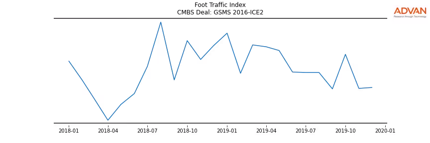 Advan Research computes accurate daily foot-traffic for all the properties and loans of the GSMS 2016-ICE2 deal. Here is the foot-traffic aggregated across all the properties of the deal: