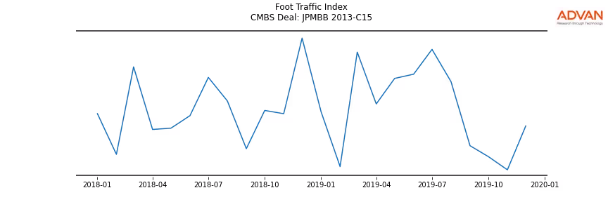 Advan Research computes accurate daily foot-traffic for all the properties and loans of the JPMBB 2013-C15 deal. Here is the foot-traffic aggregated across all the properties of the deal: