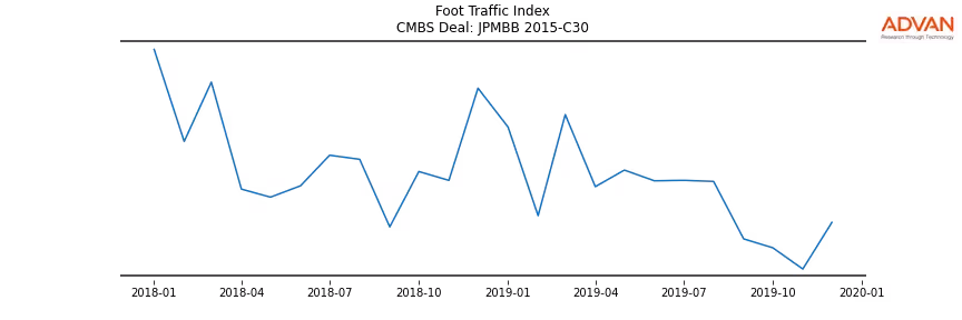 Advan Research computes accurate daily foot-traffic for all the properties and loans of the JPMBB 2015-C30 deal. Here is the foot-traffic aggregated across all the properties of the deal: