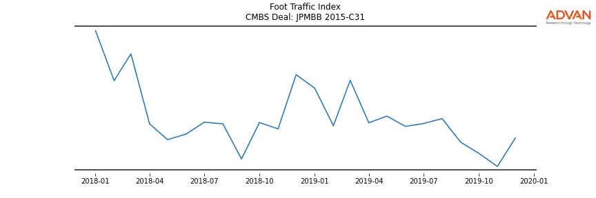 Advan Research computes accurate daily foot-traffic for all the properties and loans of the JPMBB 2015-C31 deal. Here is the foot-traffic aggregated across all the properties of the deal: