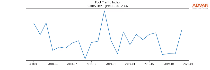 Advan Research computes accurate daily foot-traffic for all the properties and loans of the JPMCC 2012-C6 deal. Here is the foot-traffic aggregated across all the properties of the deal: