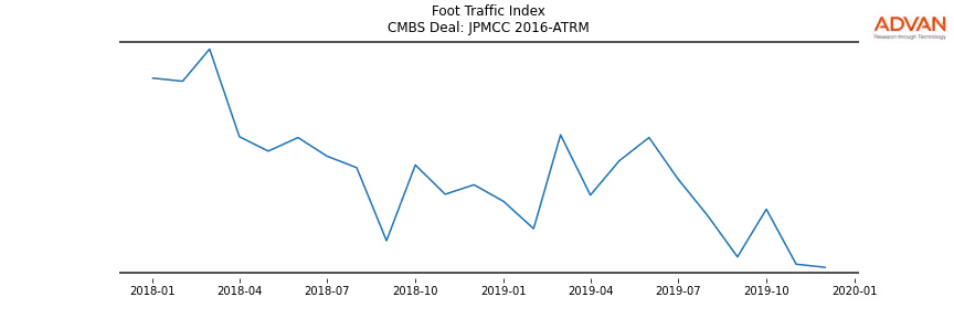 Advan Research computes accurate daily foot-traffic for all the properties and loans of the JPMCC 2016-ATRM deal. Here is the foot-traffic aggregated across all the properties of the deal: