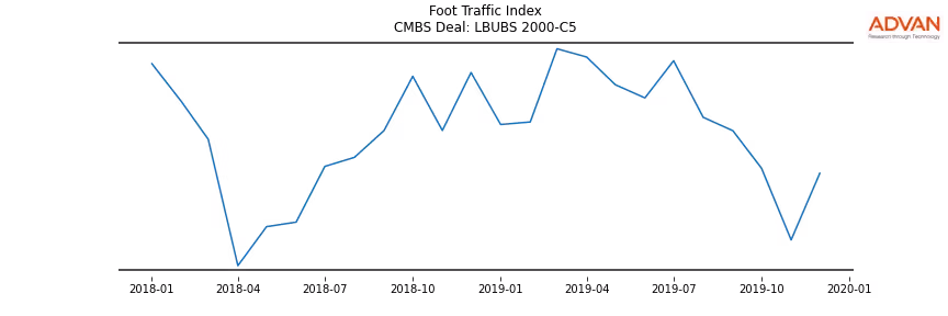 Advan Research computes accurate daily foot-traffic for all the properties and loans of the LBUBS 2000-C5 deal. Here is the foot-traffic aggregated across all the properties of the deal: