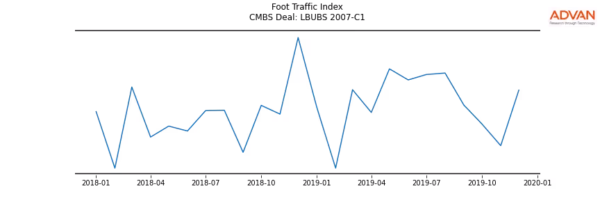 Advan Research computes accurate daily foot-traffic for all the properties and loans of the LBUBS 2007-C1 deal. Here is the foot-traffic aggregated across all the properties of the deal: