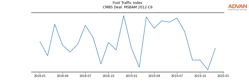 Advan Research computes accurate daily foot-traffic for all the properties and loans of the MSBAM 2012-C6 deal. Here is the foot-traffic aggregated across all the properties of the deal: