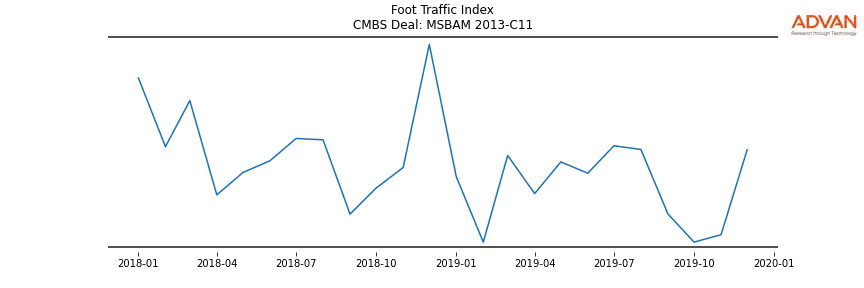 Advan Research computes accurate daily foot-traffic for all the properties and loans of the MSBAM 2013-C11 deal. Here is the foot-traffic aggregated across all the properties of the deal: