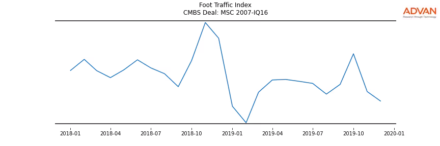 Advan Research computes accurate daily foot-traffic for all the properties and loans of the MSC 2007-IQ16 deal. Here is the foot-traffic aggregated across all the properties of the deal:
