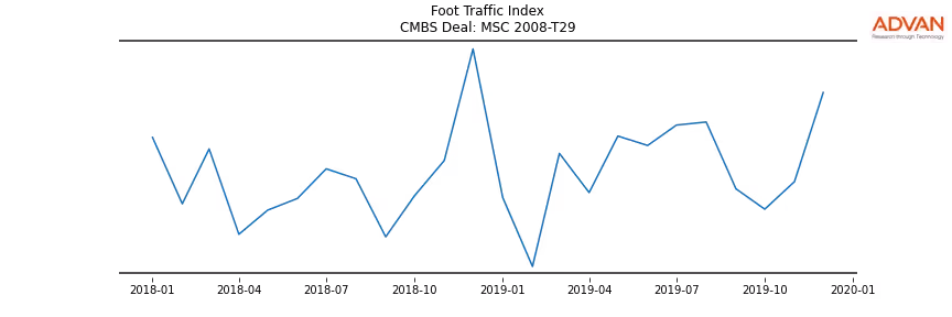 Advan Research computes accurate daily foot-traffic for all the properties and loans of the MSC 2008-T29 deal. Here is the foot-traffic aggregated across all the properties of the deal: