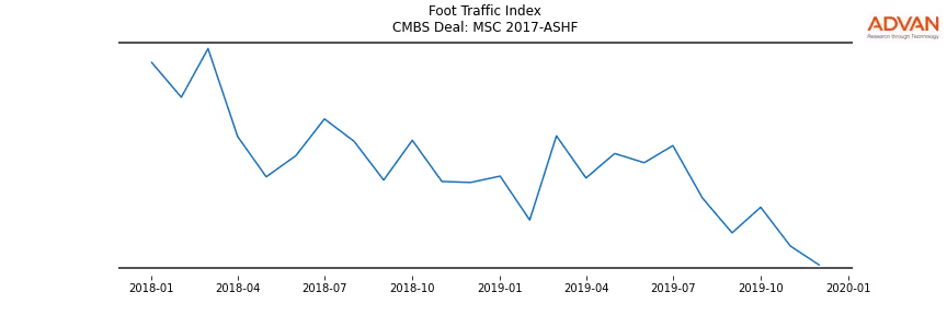 Advan Research computes accurate daily foot-traffic for all the properties and loans of the MSC 2017-ASHF deal. Here is the foot-traffic aggregated across all the properties of the deal: