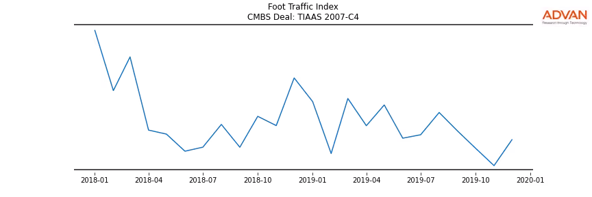 Advan Research computes accurate daily foot-traffic for all the properties and loans of the TIAAS 2007-C4 deal. Here is the foot-traffic aggregated across all the properties of the deal: